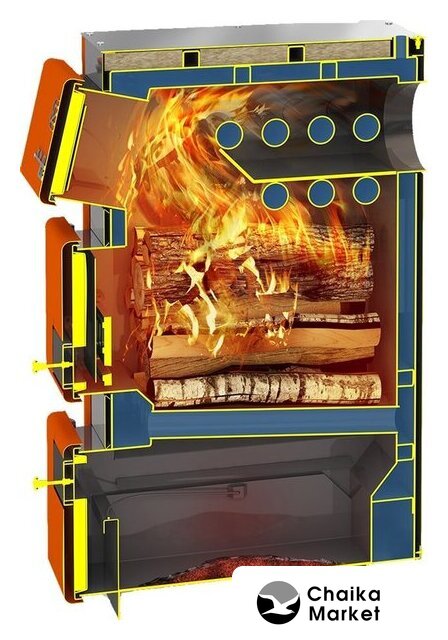 твердотопливный (дрова/пеллеты/уголь/торф), 20 кВт, 200 м², одноконтурный, напольный, закрытая камера сгорания