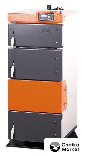 твердотопливный (пеллеты), 30 кВт, 300 м², одноконтурный, напольный, открытая камера сгорания, внешний бойлер