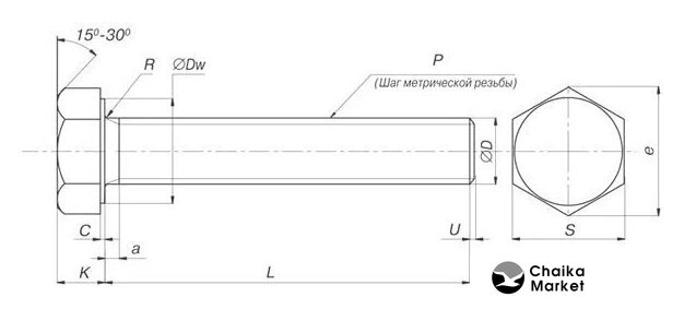 1000 в упаковке, головка шестигранная, нержавеющая сталь, 60 x 8 мм