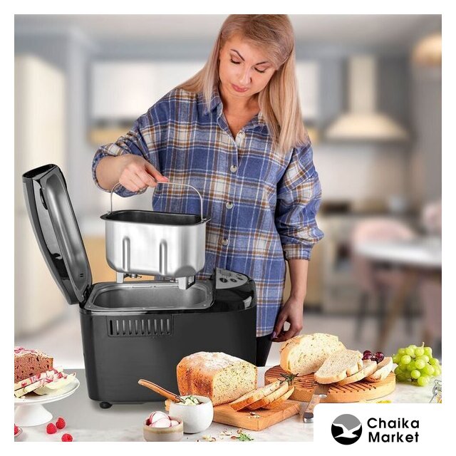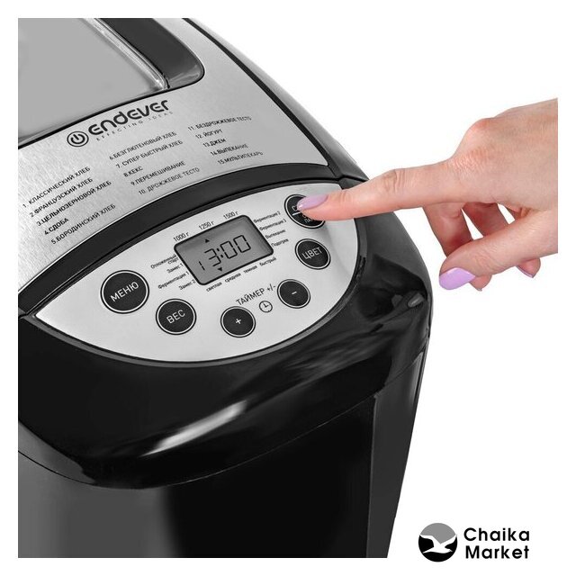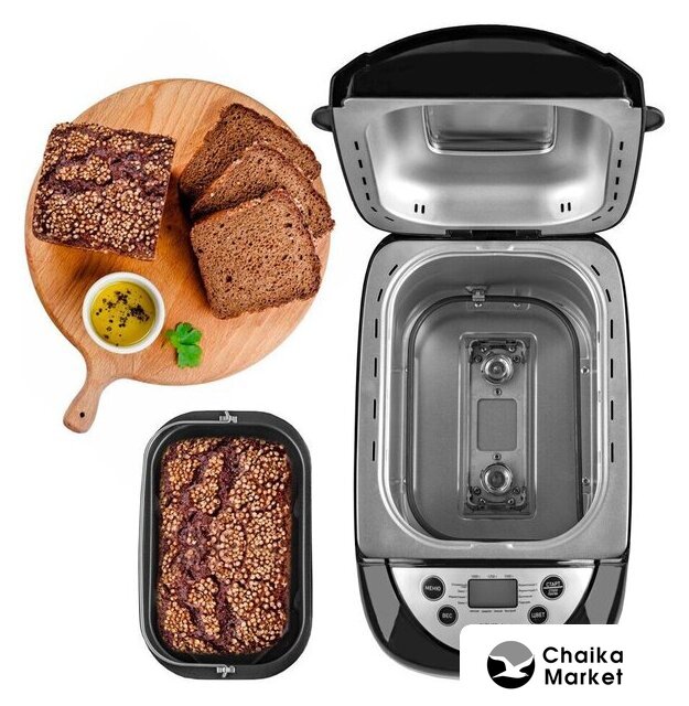 | Перечень режимов работы | белый хлеб, французский хлеб, цельнозерновой хлеб, быстрый хлеб, сладкая выпечка, безглютеновая выпечка, йогурт, кекс, джем, замес теста, дрожжевое тесто, бездрожжевое тесто, выпечка, мультипекарь, пицца |