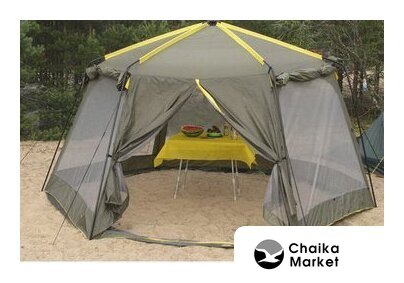 для отдыха, прямоугольная форма, каркас: сталь, стенки, москитная сетка, цвет: бежевый/зеленый, 3.65x3.75 м