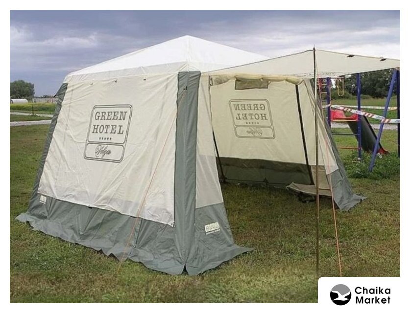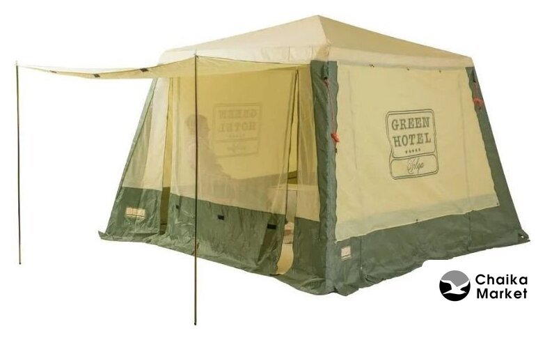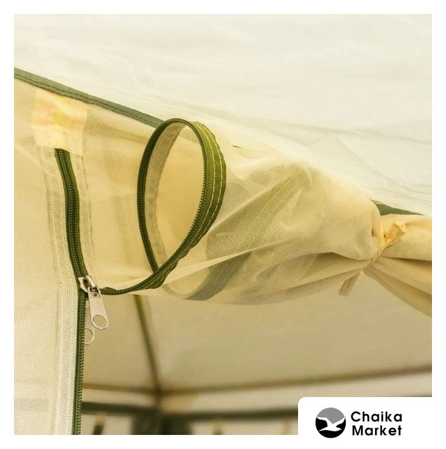 для отдыха, прямоугольная форма, каркас: сталь, стенки, москитная сетка, цвет: бежевый/зеленый, 3.65x3.75 м