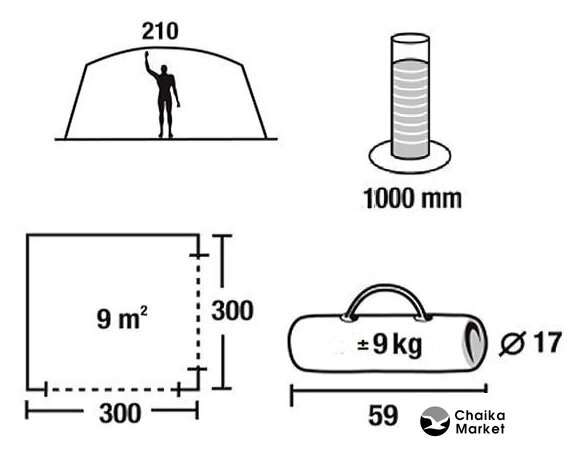 кемпинговая, весна/лето/осень, 2 входа, 1 комната, противомоскитная сетка, штормовые оттяжки