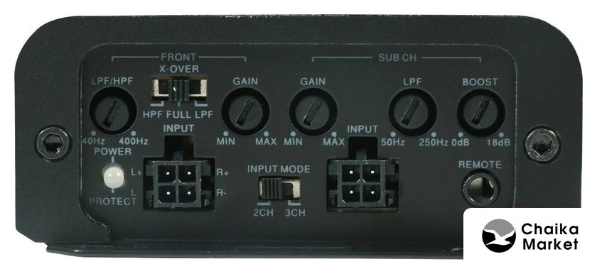 230 Вт×1 (4 Ом), 20–500 Гц, сигнал/шум: 90 дБ, коэффициент гармонических искажений: 0.3%