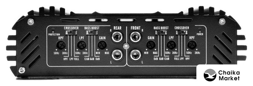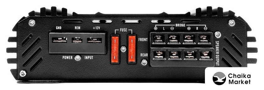 250 Вт×4 (4 Ом), 10–40000 Гц, сигнал/шум: 95 дБ