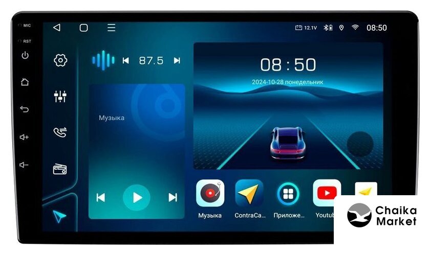 2DIN, USB-проигрыватель, USB, Bluetooth, усилитель 4x55 Вт, экран 10" цветной сенсорный, GPS