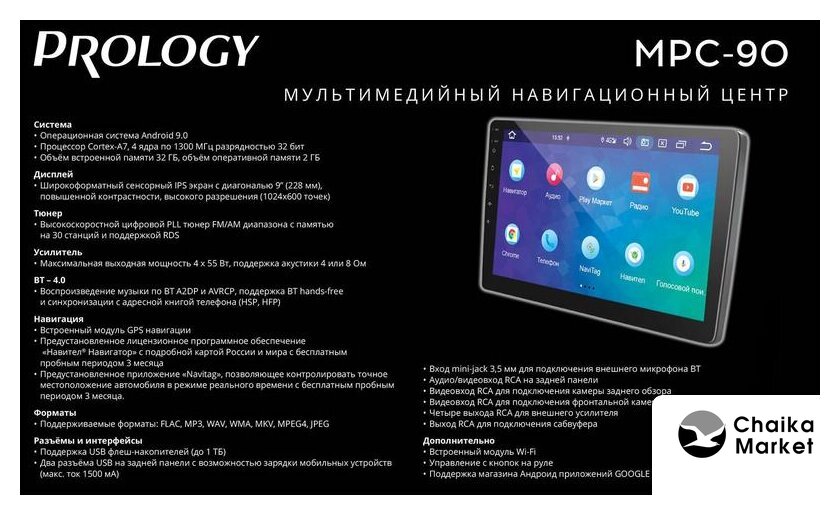 Комплектация | - Устройство PROLOGY MPC-90;- Соединительные кабели;- GPS-антенна;- Краткое руководство пользователя. |
