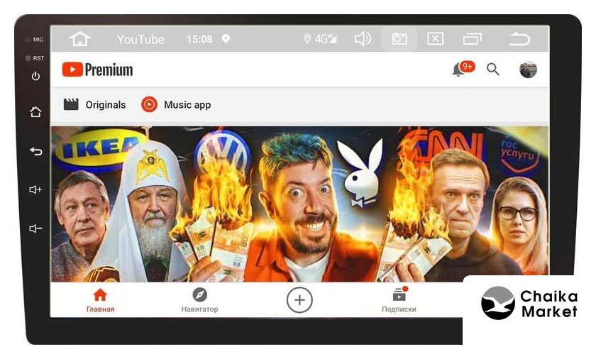 2DIN, USB-проигрыватель, USB, Bluetooth, усилитель 4x50 Вт, экран 9" цветной сенсорный, GPS