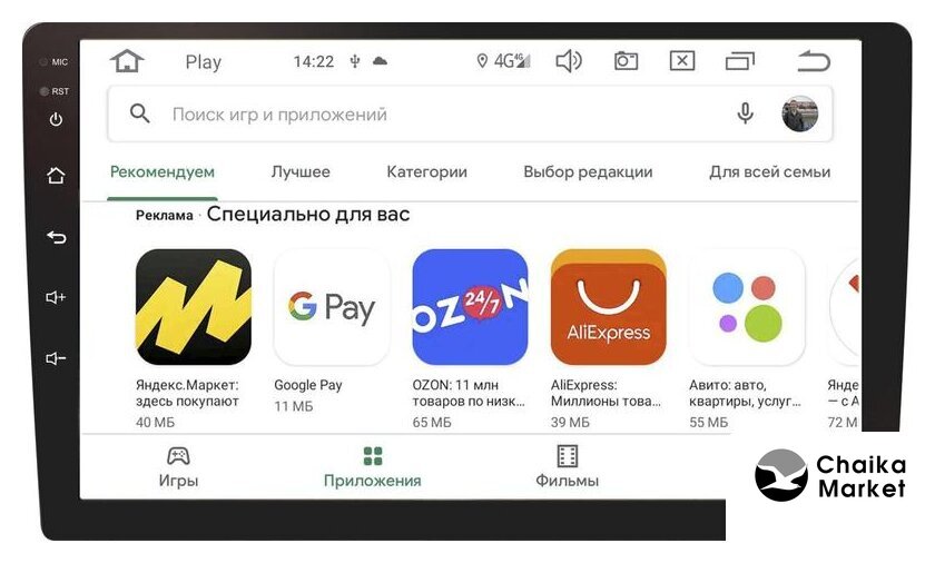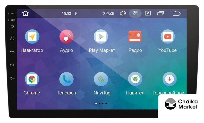 2DIN, USB-проигрыватель, USB, Bluetooth, усилитель 4x50 Вт, экран 10" цветной сенсорный, GPS