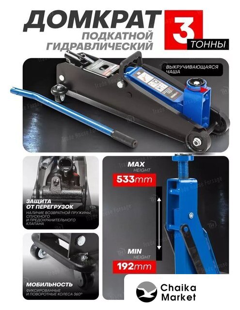 подкатной, гидравлический механизм, груз: 3 т