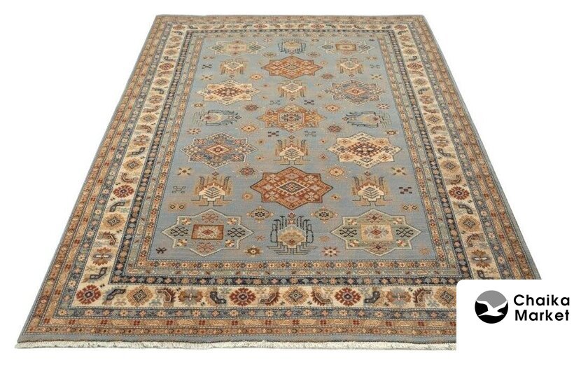 240 x 340 см, прямоугольный, натуральный материал, высокий ворс, шерсть, бежевый/рисунок/серый