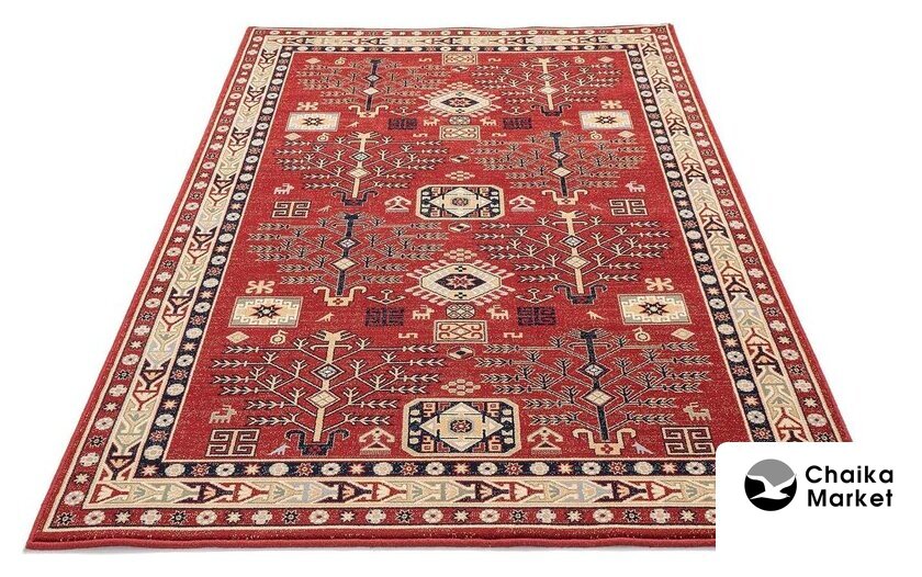 200 x 300 см, прямоугольный, натуральный материал, высокий ворс, шерсть, бежевый/рисунок