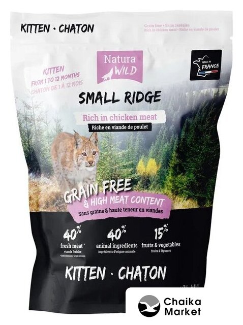 | Ингредиенты | Свежее куриное мясо 40 %* (дегидратированное 14%), обезвоженный белок птицы 15%, смесь фруктов и овощей 15% (зеленый горошек, льняное семя, сушеная морковь, мякоть цикория, юкка Шидигера, семена чиа, сушеная малина, сушеное яблоко), шкварки 13%, сушеный фермерский картофель, птичий жир 5%, гидролизованный животный белок 5%, гидролизованный птичий белок, мякоть сушеного картофеля, гидролизат печени и сердечного белка 2 %, дрожжи, свекловичный жом, минеральные вещества. |