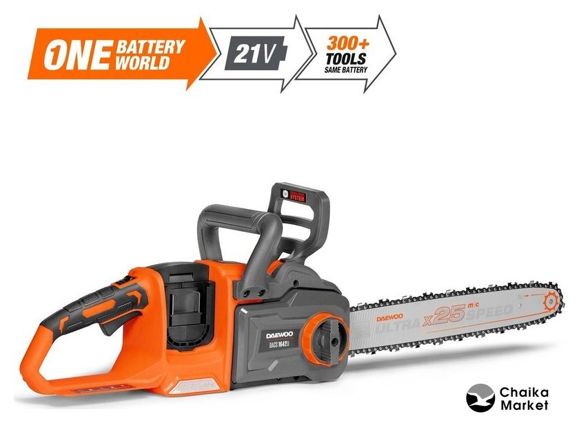 аккумуляторная, бытовая, 36 В, шаг цепи: 3/8 дюйма, длина шины: 40 см, аккумулятор в комплекте, быстрое натяжение цепи , 3.6 кг