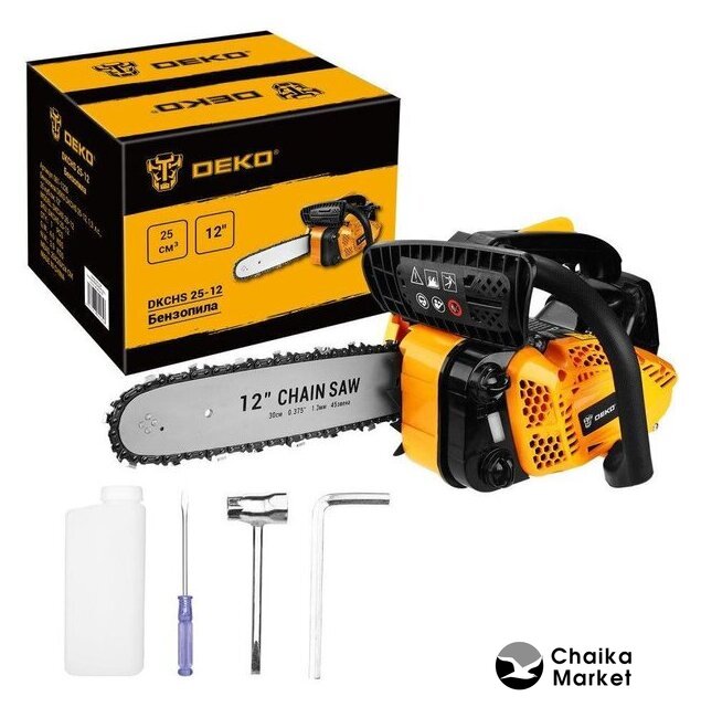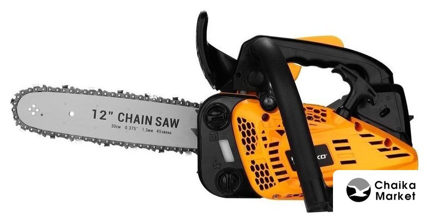 | Комплект поставки | - Основной корпус - 1 шт.- Шина - 1 шт.- Цепь - 1 шт.- Защитный щиток - 1 шт.- Зубчатый упор (гребенка) - 1 шт.- Емкость для топливной смеси - 1 шт.- Комбинированный ключ - 1 шт.- Шестигранный ключ - 1 шт.- Отвертка - 1 шт.- Винт - 2 шт.- Руководство по эксплуатации- Коробка |