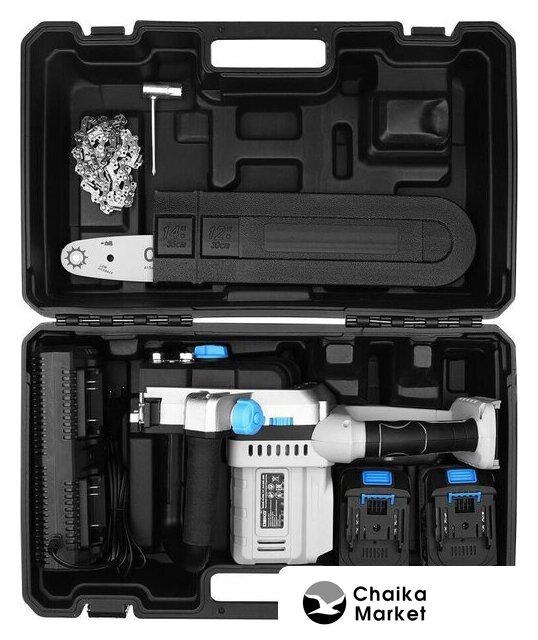 | Комплект поставки | - Пила аккумуляторная - 1 шт.- Аккумулятор 4,0 Ач - 2 шт.- Двойное зарядное устройство - 1 шт.- Пильная шина - 1 шт.- Цепь - 1 шт.- Защитный кожух шины - 1 шт.- Ключ - 1 шт.- Инструкция- Кейс |