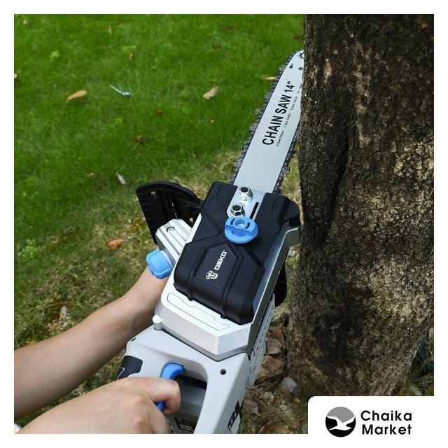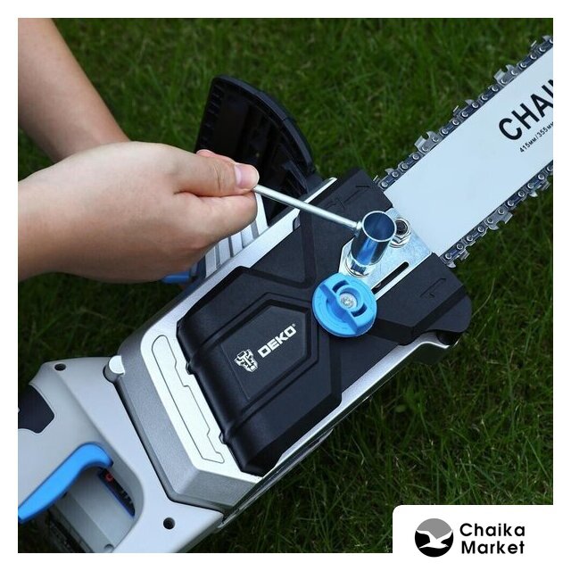 аккумуляторная, бытовая, 21 В, шаг цепи: 3/8 дюйма, длина шины: 30 см, аккумулятор в комплекте, быстрое натяжение цепи, 2.6 кг