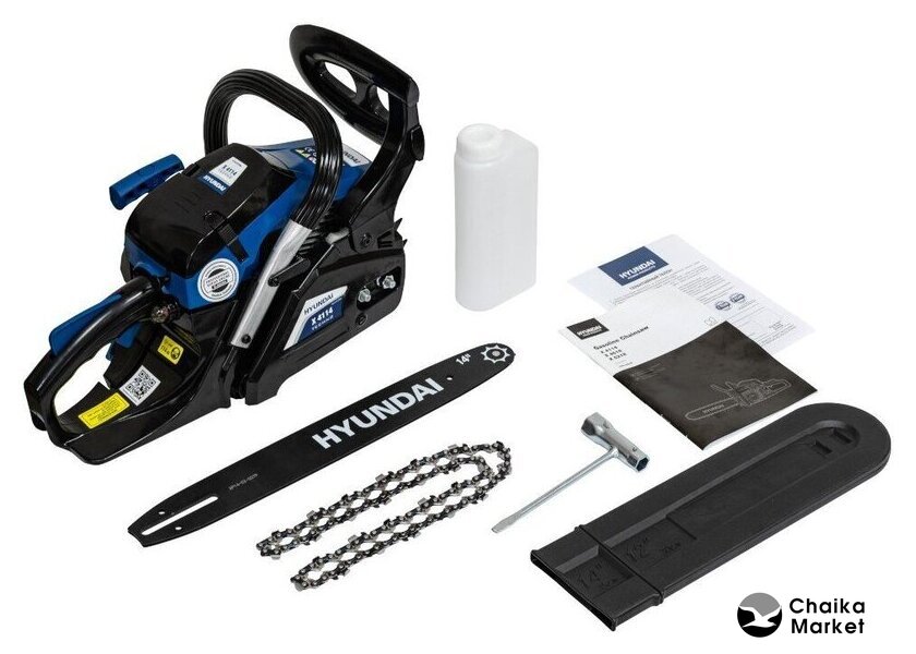 | Комплект поставки | • пила• шина• защитный кожух цепи• пильная цепь• набор ключей• ёмкость для смешивания топлива• руководство по эксплуатации• гарантийный талон |