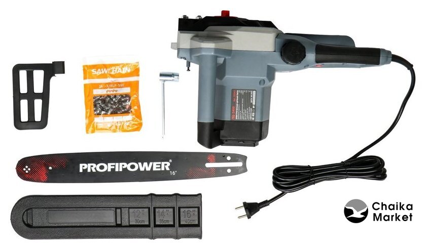 электрическая, бытовая, 2 кВт, шаг цепи: 3/8 дюйма, длина шины: 40 см, быстрое натяжение цепи, 5 кг