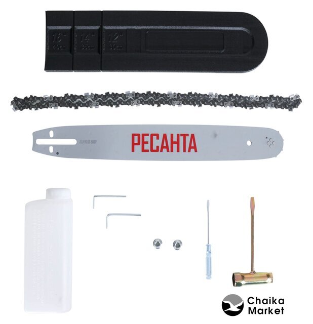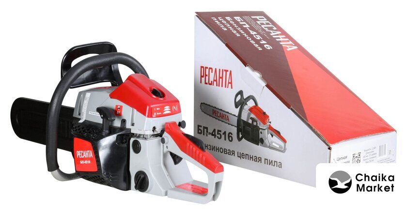 Комплект поставки | Бензопила - 1 шт. Шина - 1 шт. Цепь - 1 шт. Защитный кожух шины - 1 шт. Ёмкость для смешивания топливной смеси - 1 шт. Комплект инструментов и принадлежностей - 1 шт. |