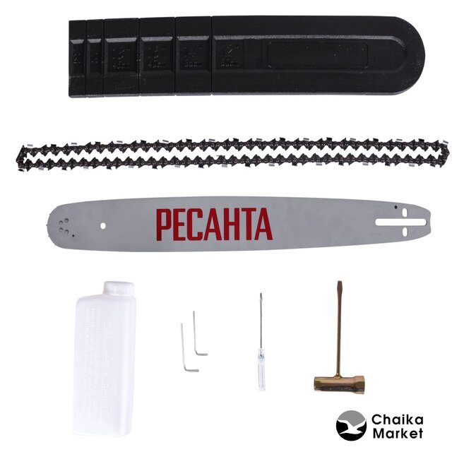 Комплект поставки | Бензопила - 1 шт.Шина - 1 шт.Цепь - 1 шт.Защитный кожух шины - 1 шт.Ёмкость для смешивания топливной смеси - 1 шт.Комплект инструментов и принадлежностей - 1 шт. |