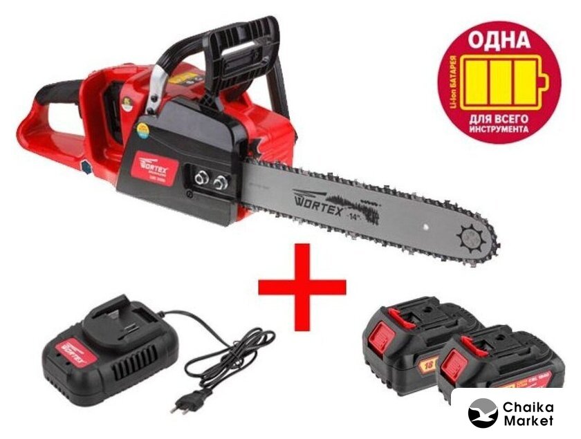 | Комплект поставки | - CEC353600029 Аккум. пила цепная WORTEX CEC 3536 шина 35 см (14), 38 LP, 1.1 мм ALL1 - 1 шт.;- CFC21201029 Зарядное устройство WORTEX FC 2120-1 ALL1 - 1 шт.;- CBL18400029 Аккумулятор WORTEX CBL 1840 18.0 В, 4.0 Ач, Li-Ion ALL1 - 2 шт.; |