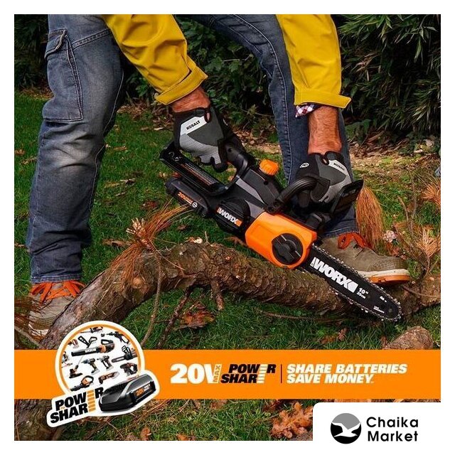 аккумуляторная, бытовая, 18 В, шаг цепи: 1/4 дюйма, длина шины: 20 см, аккумулятор в комплекте, быстрое натяжение цепи, 1.4 кг