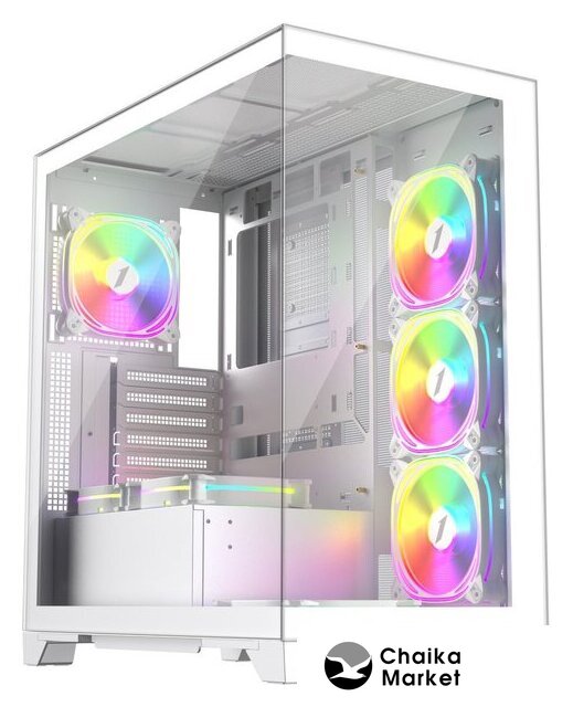 Mid Tower, БП отсутствует, для плат ATX/micro-ATX/mini-ITX, в комплекте 4 вентилятора, окно: закаленное стекло, видеокарта до 375 мм, охлаждение ЦП до 180 мм, пылевые фильтры, 2xUSB-A 3.2 5Гбит/с, 1xUSB-C 3.2 5Гбит/с, цвет белый