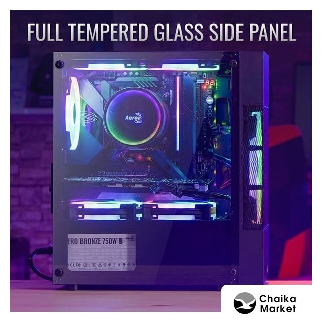 аквариум/Mid Tower, БП отсутствует, для плат ATX/micro-ATX/eATX/mini-ITX, в комплекте 3 вентилятора, окно: закаленное стекло, видеокарта до 415 мм, охлаждение ЦП до 184 мм, 1xUSB-A 3.2 5Гбит/с, 1xUSB-C 3.2 10Гбит/с, цвет черный