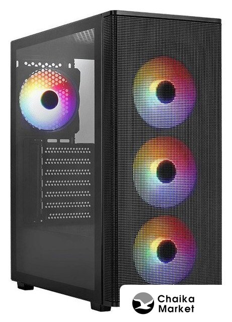 Mini Tower, БП отсутствует, для плат micro-ATX/mini-ITX, в комплекте 3 вентилятора, окно: закаленное стекло, видеокарта до 320 мм, охлаждение ЦП до 165 мм, 1xUSB 2.0, 1xUSB-A 3.2 5Гбит/с, цвет черный
