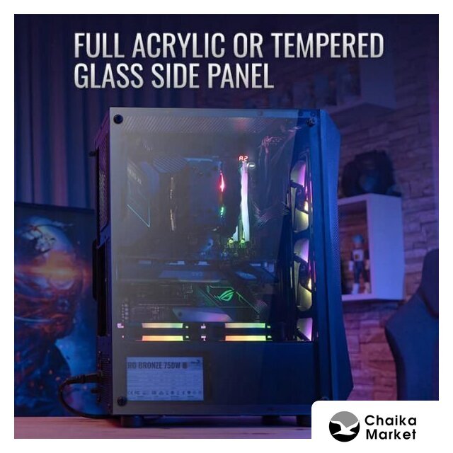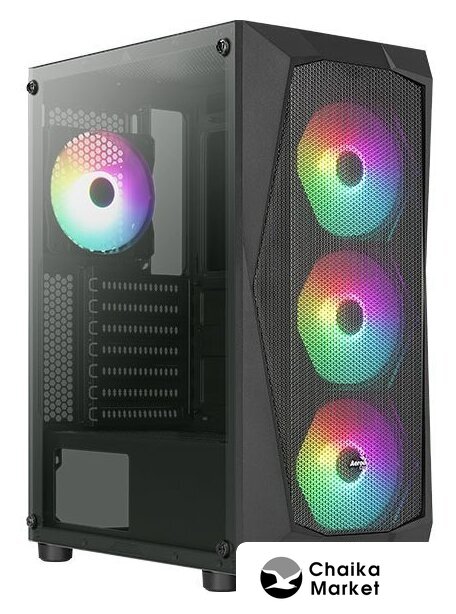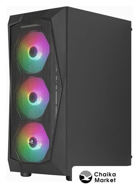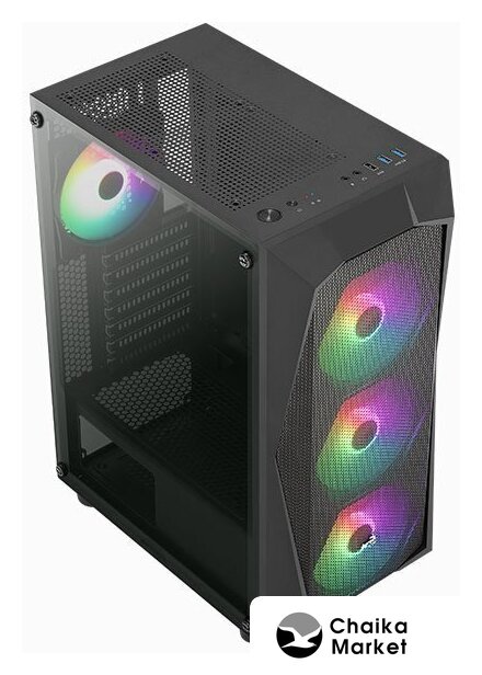 Mid Tower, БП отсутствует, для плат ATX/micro-ATX/mini-ITX, в комплекте 1 вентилятор, окно: закаленное стекло, видеокарта до 320 мм, охлаждение ЦП до 180 мм, пылевые фильтры, 2xUSB-A 3.2 5Гбит/с, цвет черный