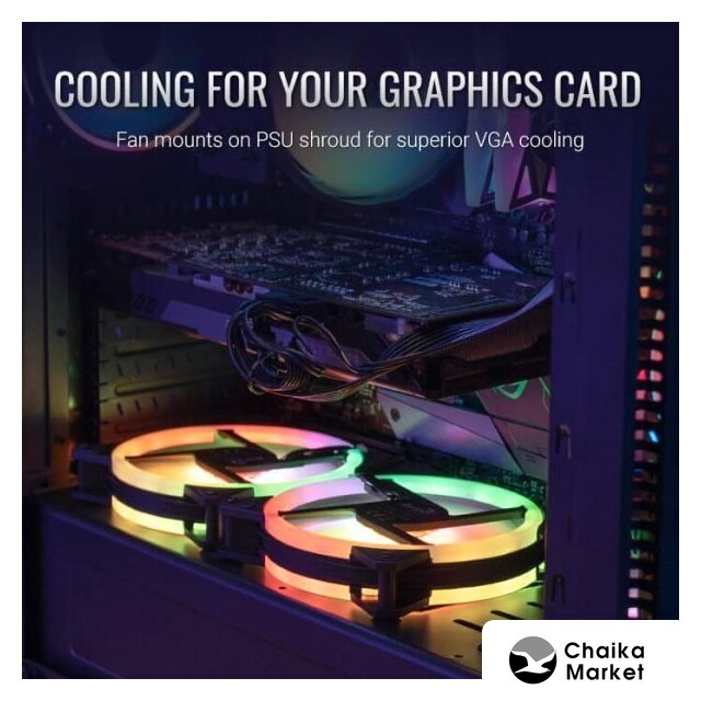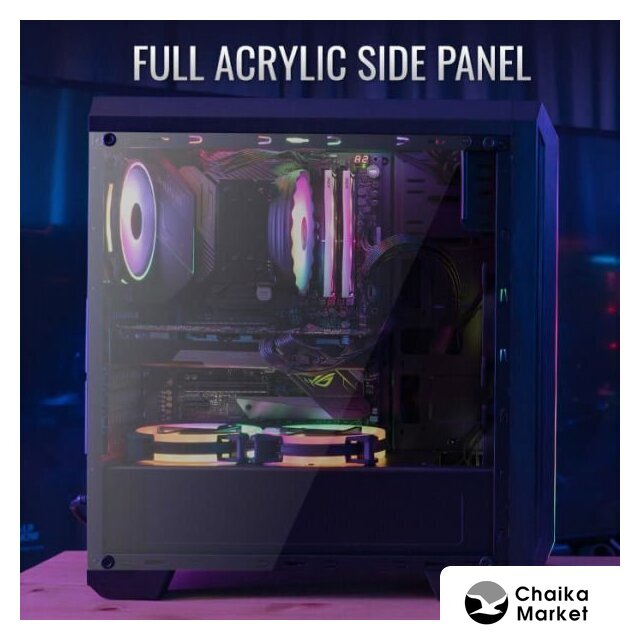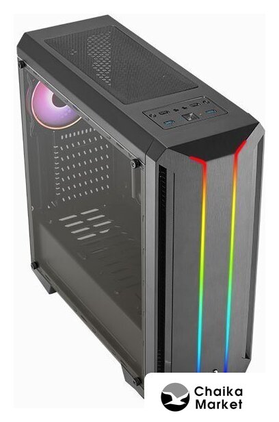 Mid Tower, БП отсутствует, для плат ATX/micro-ATX/mini-ITX, в комплекте 6 вентиляторов, окно: закаленное стекло, видеокарта до 330 мм, охлаждение ЦП до 160 мм, пылевые фильтры, 2xUSB-A 3.2 5Гбит/с, цвет черный