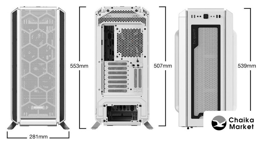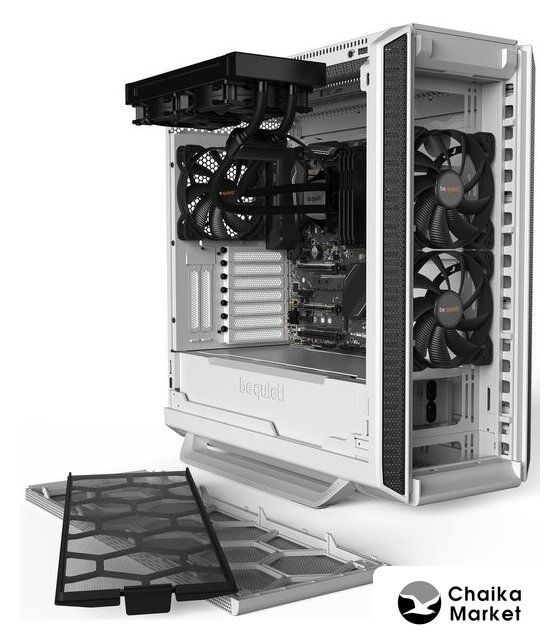 аквариум/Mid Tower, БП отсутствует, для плат ATX/micro-ATX/mini-ITX, в комплекте 4 вентилятора, окно: закаленное стекло, видеокарта до 400 мм, охлаждение ЦП до 170 мм, пылевые фильтры, 2xUSB-A 3.2 10Гбит/с, 1xUSB-C 3.2 10Гбит/с, цвет белый