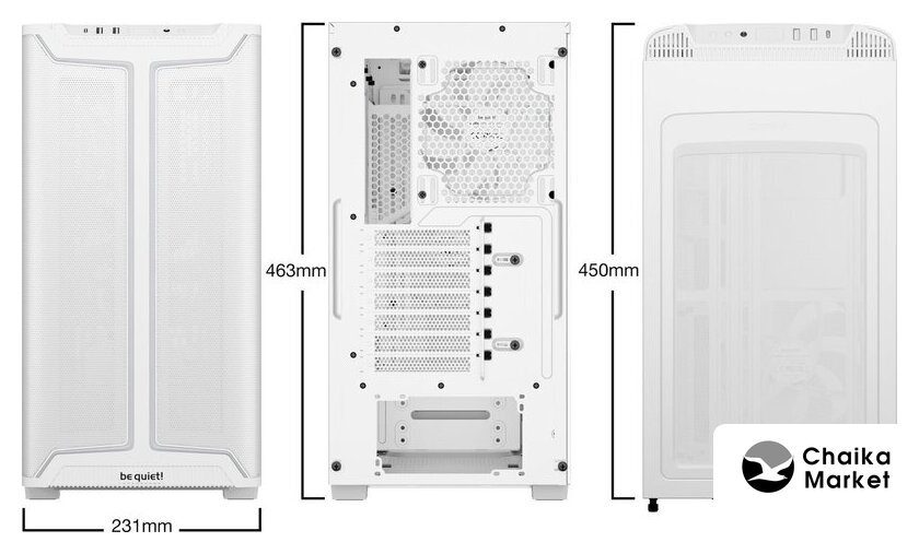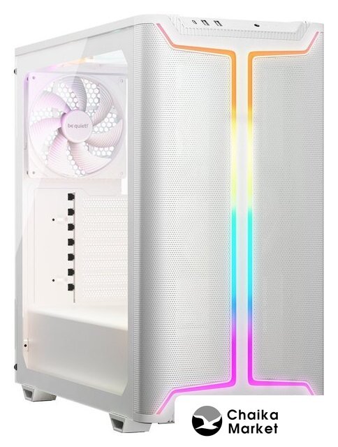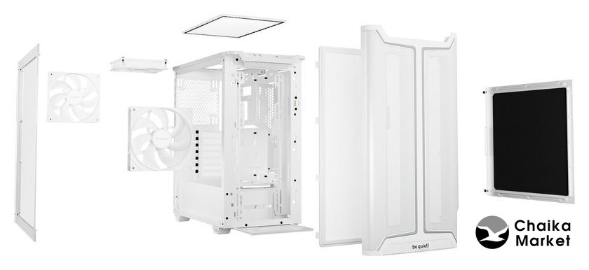 Mid Tower, БП отсутствует, для плат ATX/micro-ATX/mini-ITX, с 2 вентиляторами в комплекте, видеокарта до 368 мм, охлаждение ЦП до 178 мм, пылевые фильтры, 2xUSB-A 3.2 5Гбит/с, 1xUSB-C 3.2 10Гбит/с, цвет белый