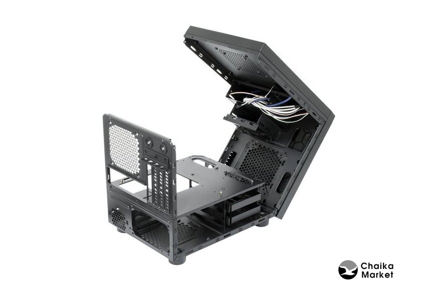 Mini Tower, БП отсутствует, для плат micro-ATX/mini-ITX, в комплекте 3 вентилятора, окно: закаленное стекло, видеокарта до 320 мм, охлаждение ЦП до 165 мм, пылевые фильтры, 1xUSB-A 3.2 5Гбит/с, 1xUSB-C 3.2 5Гбит/с, цвет черный