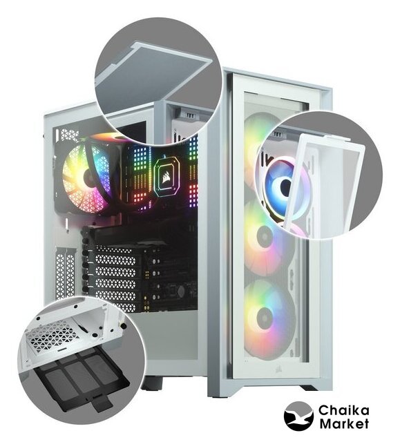 аквариум/Mini Tower, БП отсутствует, для плат ATX/micro-ATX/eATX/mini-ITX, окно: закаленное стекло, видеокарта до 395 мм, охлаждение ЦП до 170 мм, пылевые фильтры, 2xUSB-A 3.2 5Гбит/с, 1xUSB-C 3.2 5Гбит/с, цвет белый