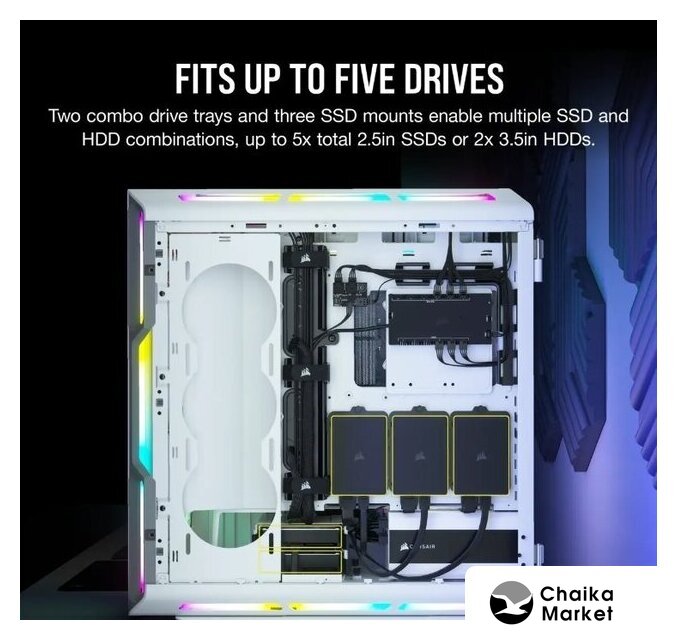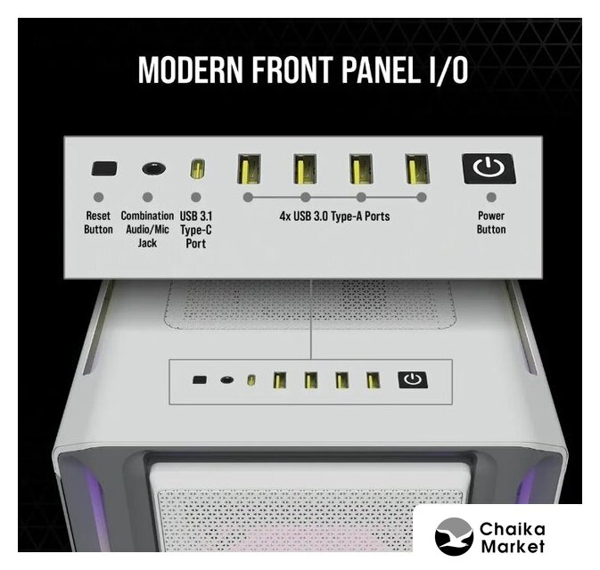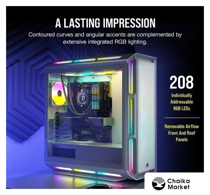 Full Tower, БП отсутствует, для плат ATX/micro-ATX/mini-ITX, в комплекте 3 вентилятора с контроллером вращения, окно: закаленное стекло, видеокарта до 450 мм, охлаждение ЦП до 190 мм, пылевые фильтры, 4xUSB-A 3.2 5Гбит/с, 1xUSB-C 3.2 10Гбит/с, цвет белый