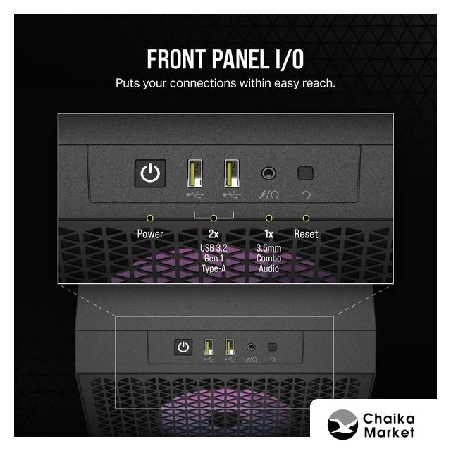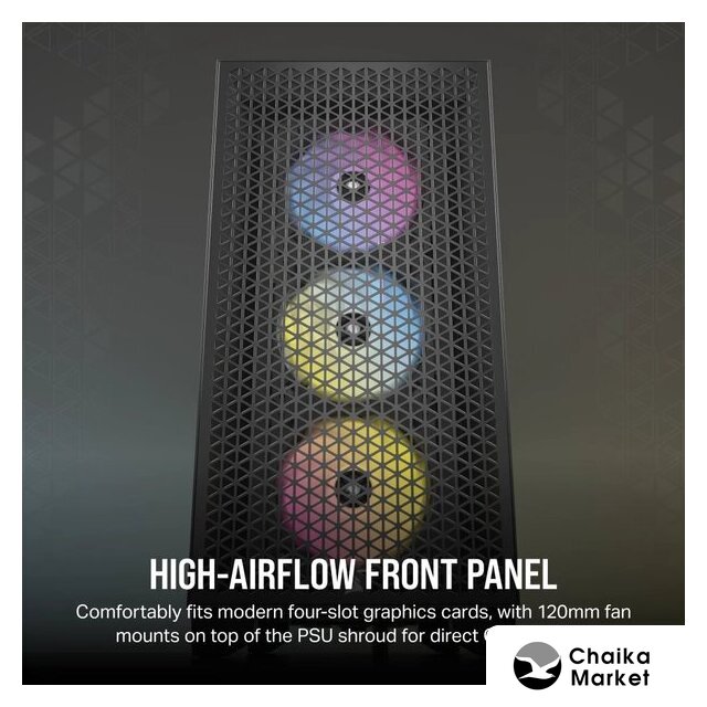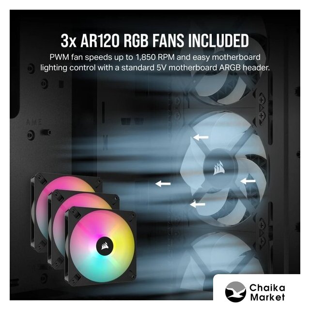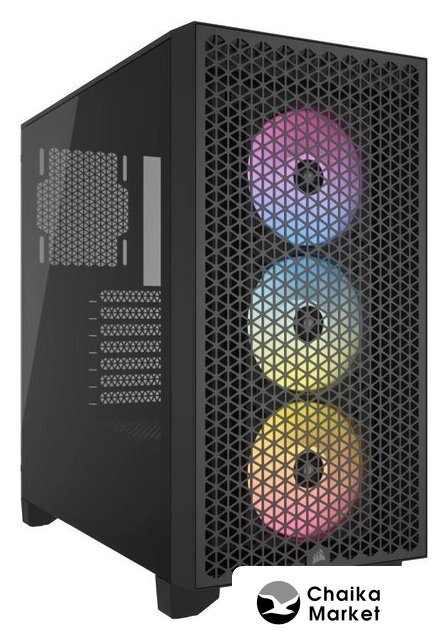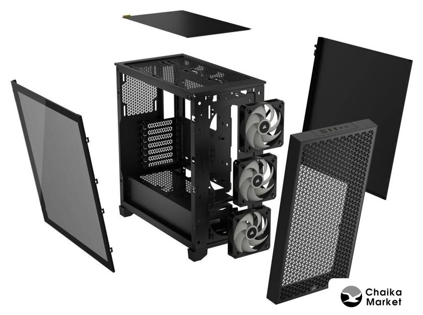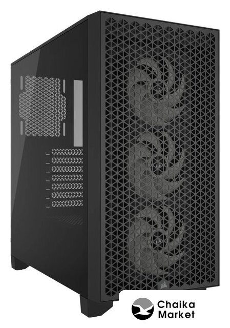 Mid Tower, БП отсутствует, для плат ATX/micro-ATX/mini-ITX, в комплекте 3 вентилятора, видеокарта до 405 мм, охлаждение ЦП до 170 мм, пылевые фильтры, 2xUSB-A 3.2 5Гбит/с, цвет черный