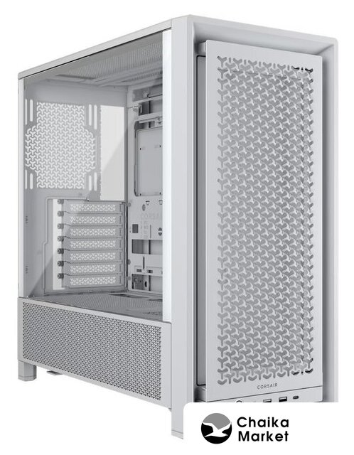 аквариум/Mid Tower, БП отсутствует, для плат ATX/micro-ATX/mini-ITX, в комплекте 5 вентиляторов, окно: закаленное стекло, видеокарта до 400 мм, охлаждение ЦП до 175 мм, пылевые фильтры, 2xUSB-A 3.2 5Гбит/с, 1xUSB-C 3.2 5Гбит/с, цвет белый
