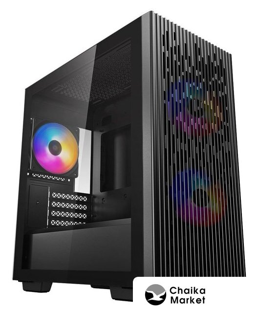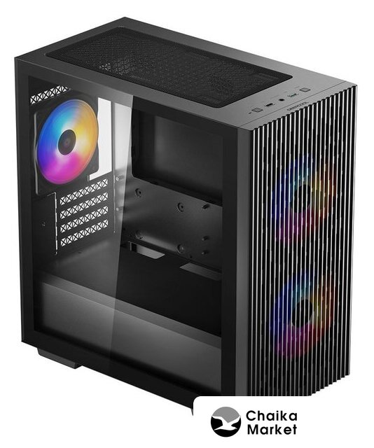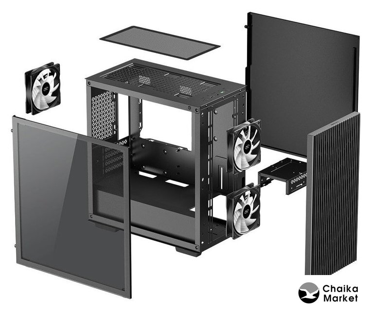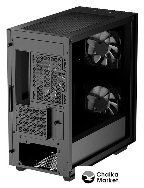 Mini Tower, БП отсутствует, для плат micro-ATX/mini-ITX, в комплекте 3 вентилятора, окно: закаленное стекло, видеокарта до 320 мм, охлаждение ЦП до 165 мм, пылевые фильтры, 1xUSB-A 3.2 5Гбит/с, 1xUSB-C 3.2 5Гбит/с, цвет черный