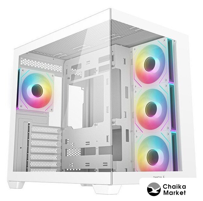 Mini Tower, БП отсутствует, для плат micro-ATX/mini-ITX, в комплекте 4 вентилятора, окно: закаленное стекло, видеокарта до 380 мм, охлаждение ЦП до 165 мм, 2xUSB 2.0, цвет черный