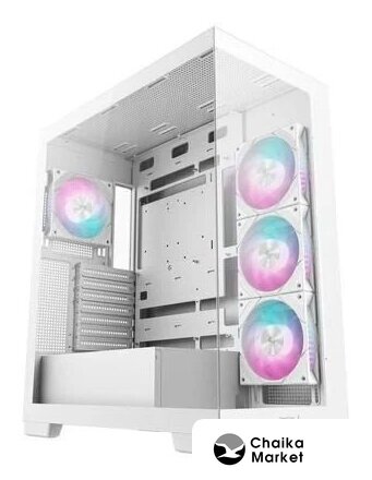Mid Tower, БП отсутствует, для плат ATX/micro-ATX/eATX/mini-ITX, в комплекте 4 вентилятора, окно: закаленное стекло, видеокарта до 380 мм, охлаждение ЦП до 175 мм, пылевые фильтры, 1xUSB-A 3.2 5Гбит/с, 1xUSB-C 3.2 5Гбит/с, цвет белый