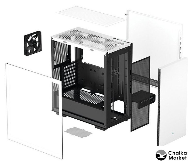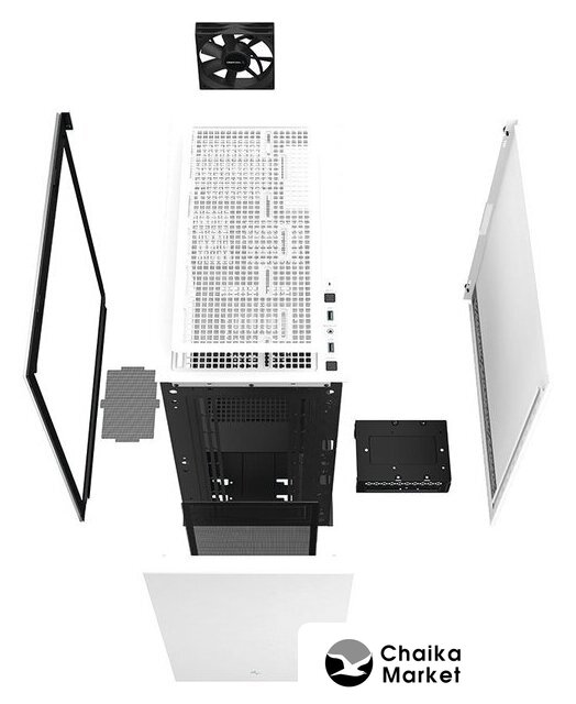 Mid Tower, БП отсутствует, для плат ATX/micro-ATX/mini-ITX, в комплекте 6 вентиляторов, окно: закаленное стекло, видеокарта до 330 мм, охлаждение ЦП до 160 мм, пылевые фильтры, 2xUSB-A 3.2 5Гбит/с, цвет черный