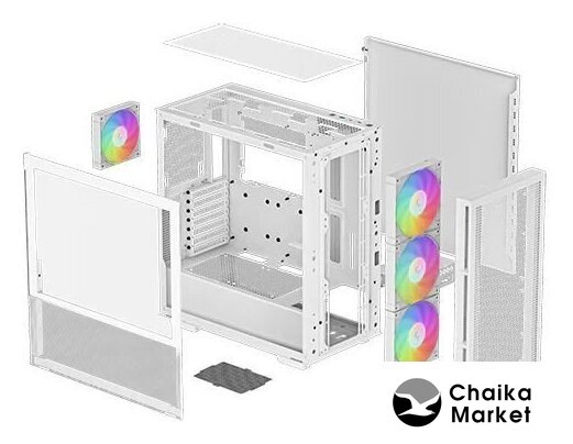 аквариум/Mid Tower, БП отсутствует, для плат ATX/micro-ATX/eATX/mini-ITX, в комплекте 3 вентилятора, окно: закаленное стекло, видеокарта до 415 мм, охлаждение ЦП до 184 мм, 1xUSB-A 3.2 5Гбит/с, 1xUSB-C 3.2 10Гбит/с, цвет белый