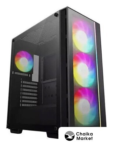 Mid Tower, БП отсутствует, для плат ATX/micro-ATX/mini-ITX, в комплекте 5 вентиляторов, окно: закаленное стекло, видеокарта до 380 мм, охлаждение ЦП до 165 мм, пылевые фильтры, 2xUSB 2.0, 2xUSB-A 3.2 5Гбит/с, цвет черный