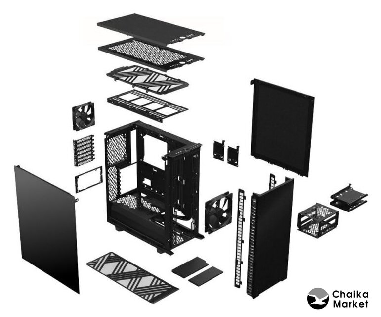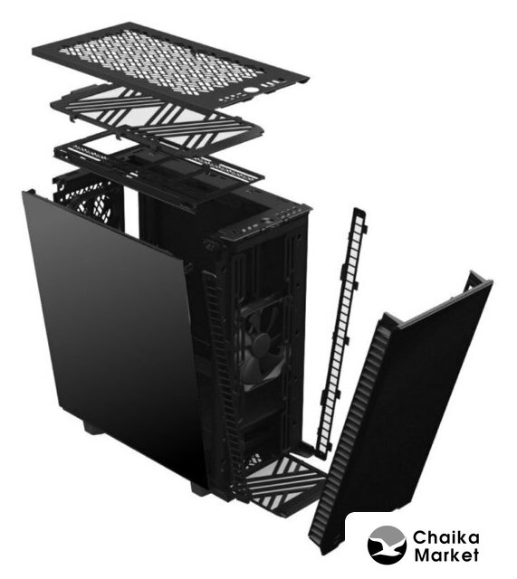 Mid Tower, БП отсутствует, для плат ATX/micro-ATX/mini-ITX, в комплекте 2 вентилятора, видеокарта до 355 мм, охлаждение ЦП до 145 мм, пылевые фильтры, 2xUSB-A 3.2 5Гбит/с, 1xUSB-C 3.2 10Гбит/с, цвет черный