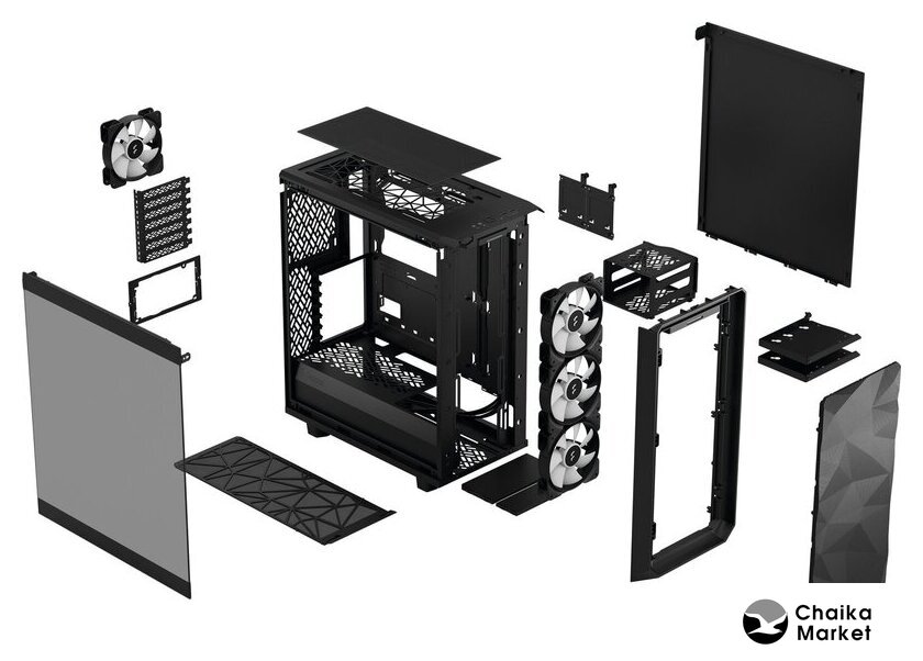| Конфигурация вентиляторов | спереди: 3x 120 or 2x 140 mm (в комплекте 3x Aspect 12 RGB)сверху: 2x 120/140 mmснизу: 1x 120 mm (без HDD корзины)сзади: 1x 120 mm (в комплекте 1x Aspect 12 RGB) |