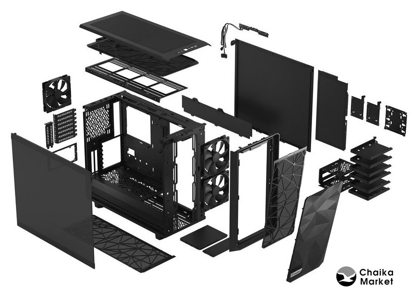 черный, блок питания отсутствует, 3 вентилятора