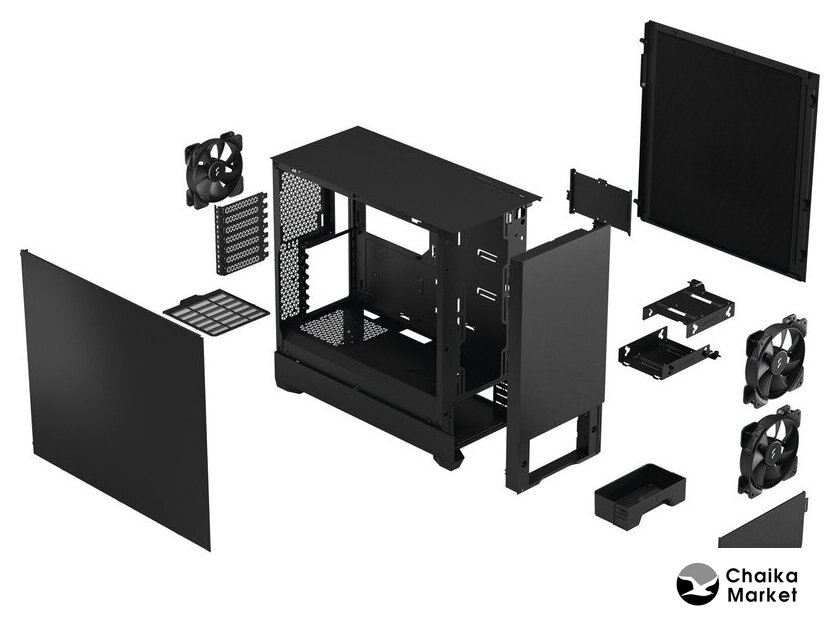 Mid Tower, БП отсутствует, для плат ATX/micro-ATX/mini-ITX, в комплекте 0 вентиляторов, окно: закаленное стекло, видеокарта до 280 мм, охлаждение ЦП до 170 мм, пылевые фильтры, 2xUSB 2.0, 1xUSB-A 3.2 5Гбит/с, цвет черный