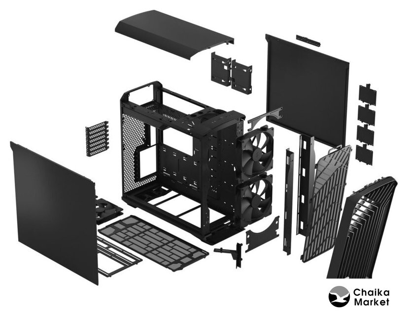 Full Tower, БП отсутствует, для плат ATX/micro-ATX/eATX, в комплекте 4 вентилятора с контроллером вращения, видеокарта до 480 мм, охлаждение ЦП до 185 мм, пылевые фильтры, 2xUSB 2.0, 2xUSB-A 3.2 5Гбит/с, цвет черный